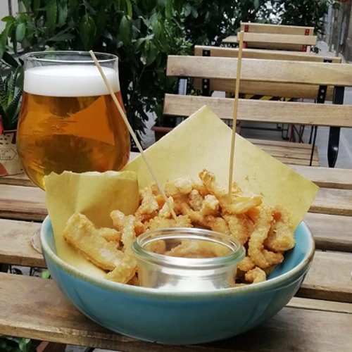 Visto che era sul menù, ho ordinato anche una porzione di trippa fritta con maionese al Laphroaig. Frittura croccante, non unta, perfetta. Mi aspettavo di sentire più marcatamente l’aroma del whisky scozzese nella salsa, ma il tutto era comunque delicatissimo e piacevole al gusto fino all’ultimo pezzetto. In abbinamento ho bevuto un bicchiere di “Che belle gose“, birra italiana di ispirazione tedesca, aspra e dal retrogusto salato.