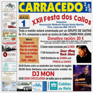 SPAGNA – La Festa dos callos, organizzata dalla Asociación Mulleres Rurais Santa Mariña de Carracedo nella cittadina spagnola di Caldas de Reis, propone una giornata