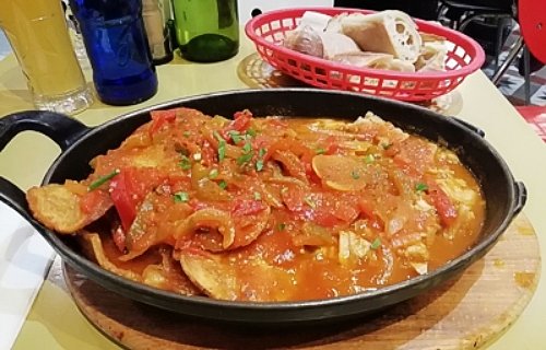 Qui ho ordinato “tripes sauce basquaise et pommes de terre”, ovvero trippa alla salsa basca con patate. Rispetto alla ricetta tradizionale delle “tripes à la basquaise” pubblicata in “Ricette francesi di trippa” e conosciuta anche come “gras-double à la mode basque”, questa preparazione aveva in più appunto le patate, tagliate a fettine sottilissime e servite assieme a quel sugo di peperoni e cipolle che da solo caratterizza molti dei piatti della gastronomia basca. Porzione direi più che abbondante, tanto che non sono riuscito a finirla. A fare da contraltare alla ricchezza del sugo, ho accompagnato la cena con una fresca birra 1664 Blanche (da oggi la mia preferita) dal deciso sapore di agrumi.